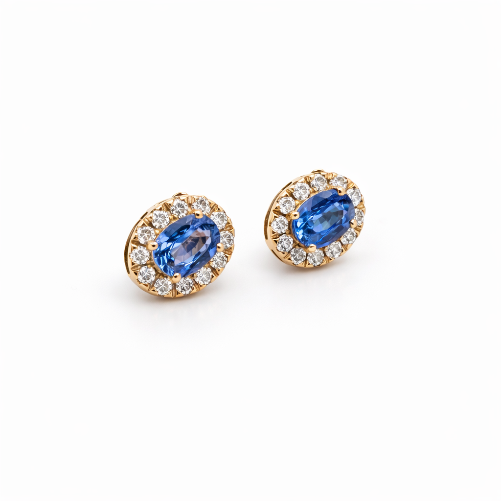 Earrings IS119 with 2 oval tanzanites of 2.05ct, 24 diamonds of 0.66ct and 3.76g of 18kt gold