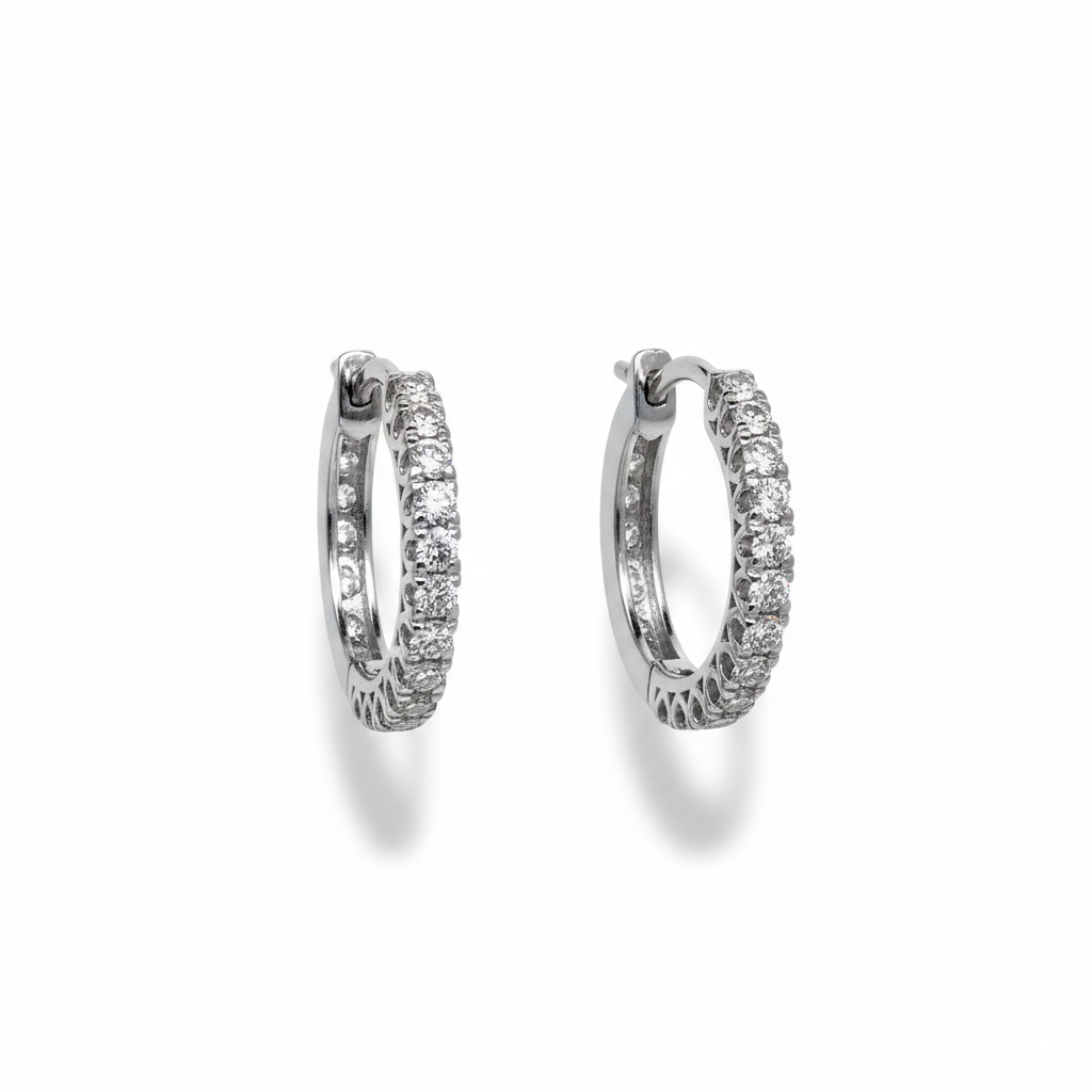 Hoop earrings IS41 with 24 diamonds of 0.95ct and 4.48g of 18kt white gold
