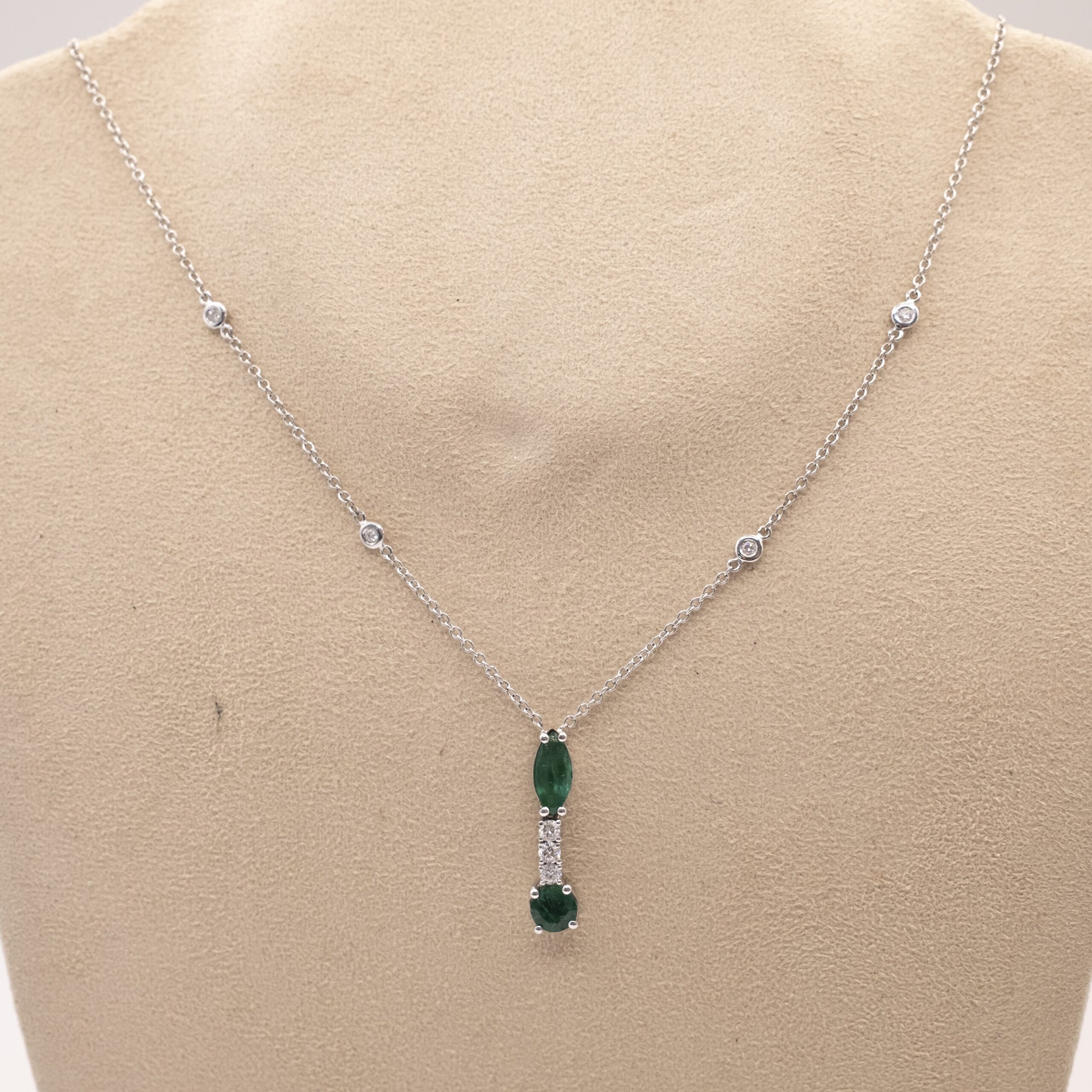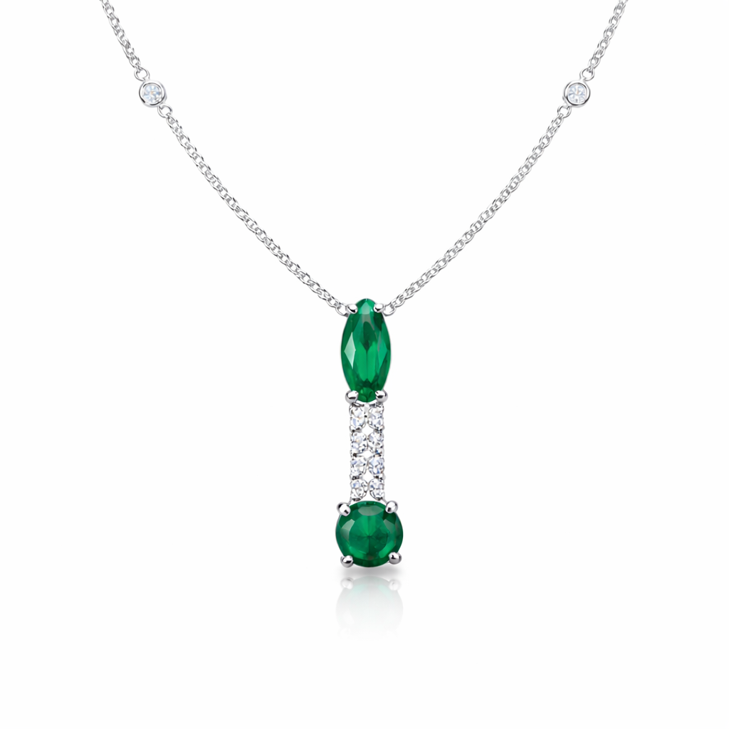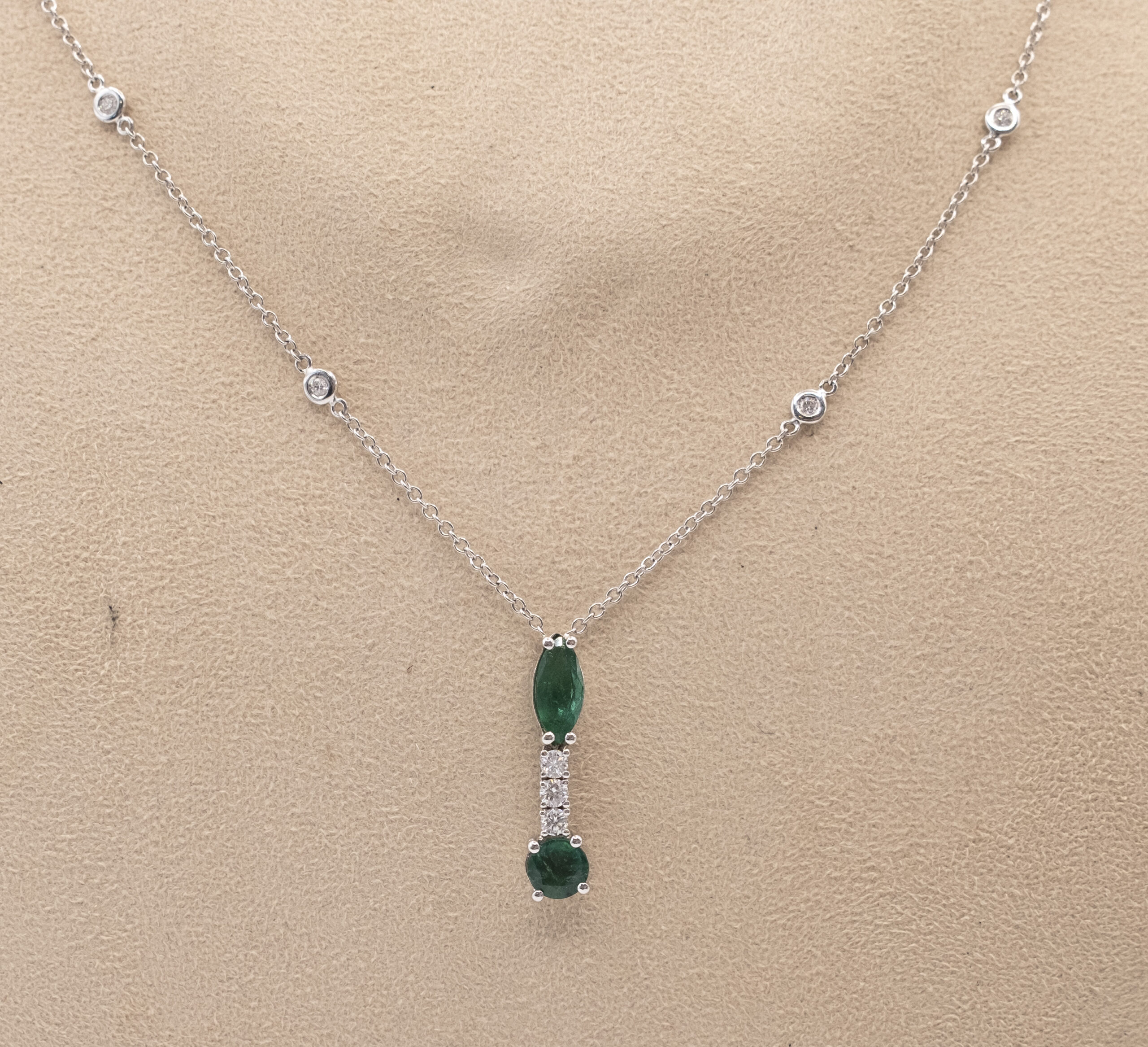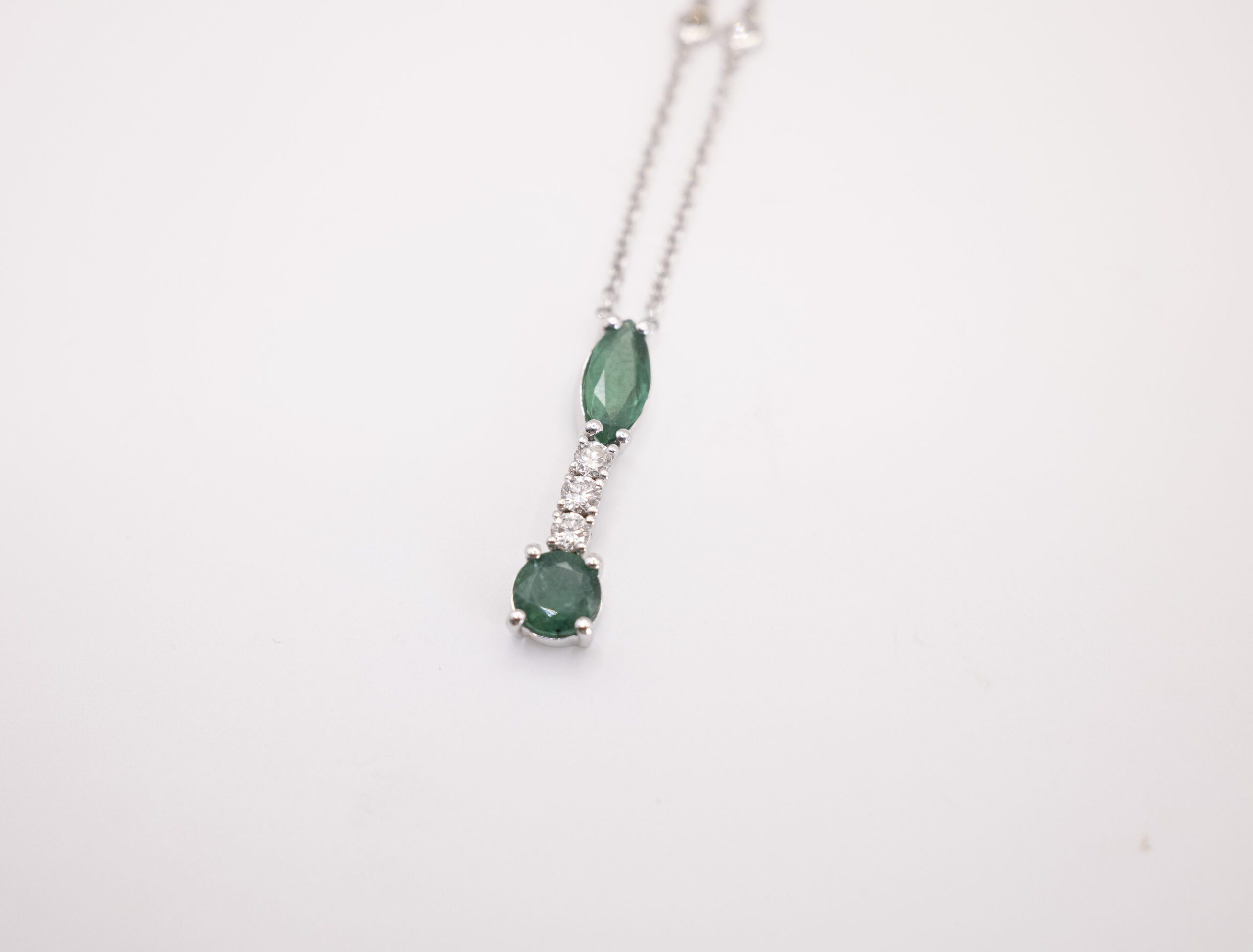 Necklace IS98 with 1 emerald of 1.11ct, 16 diamonds of 0.74ct and 4.50g of 18kt white gold