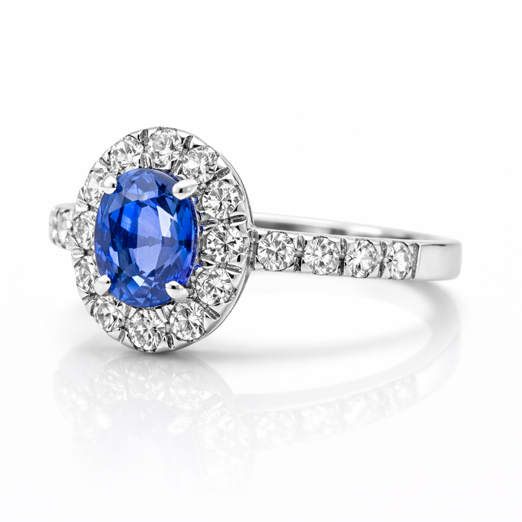 Ring IS11 with 1 tanzanite of 1.23ct, 20 diamonds of 0.50ct and 3.00g of 18kt white gold