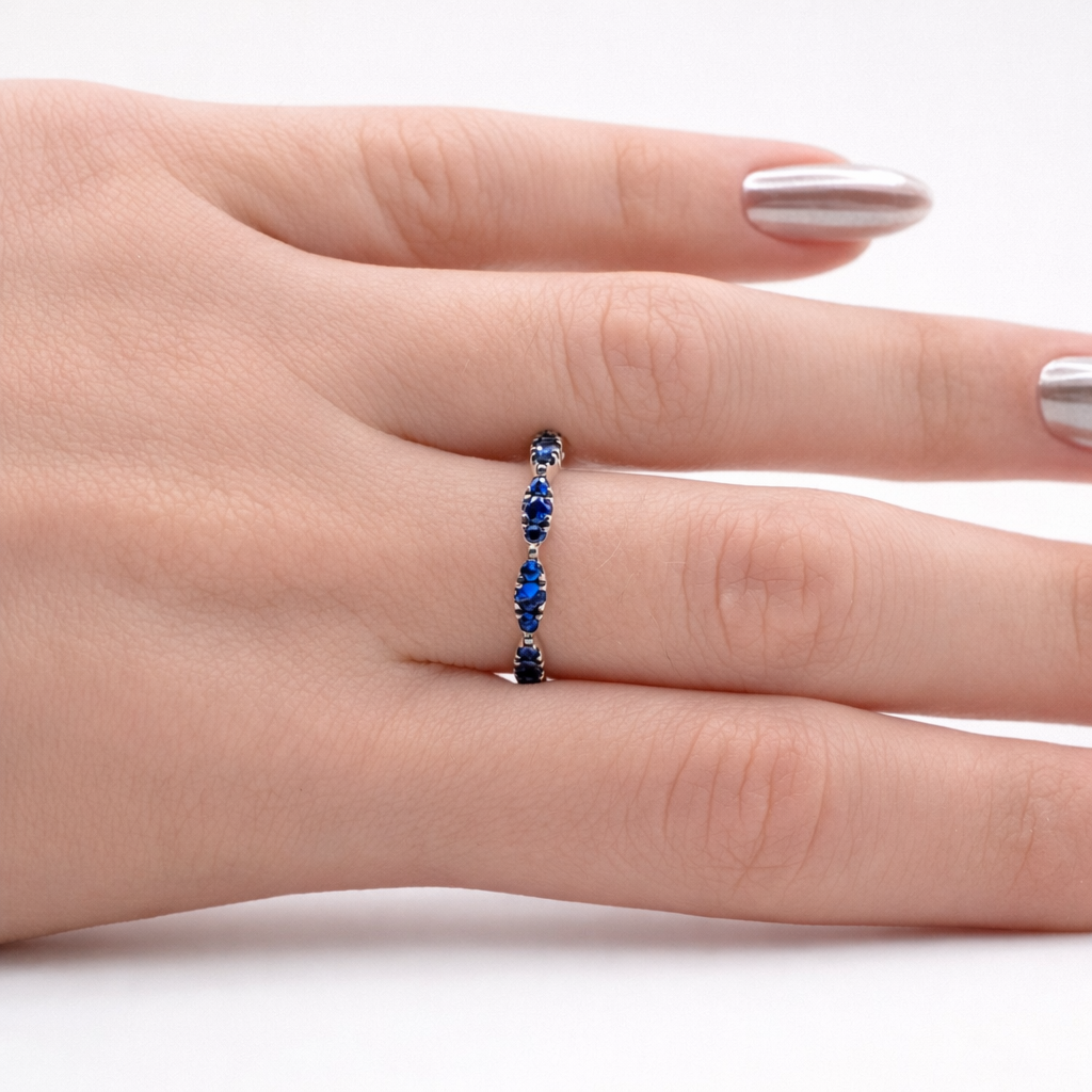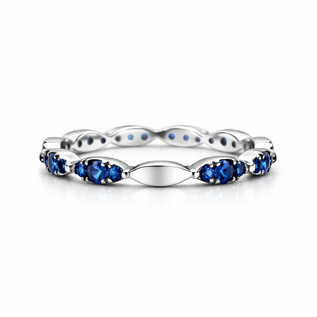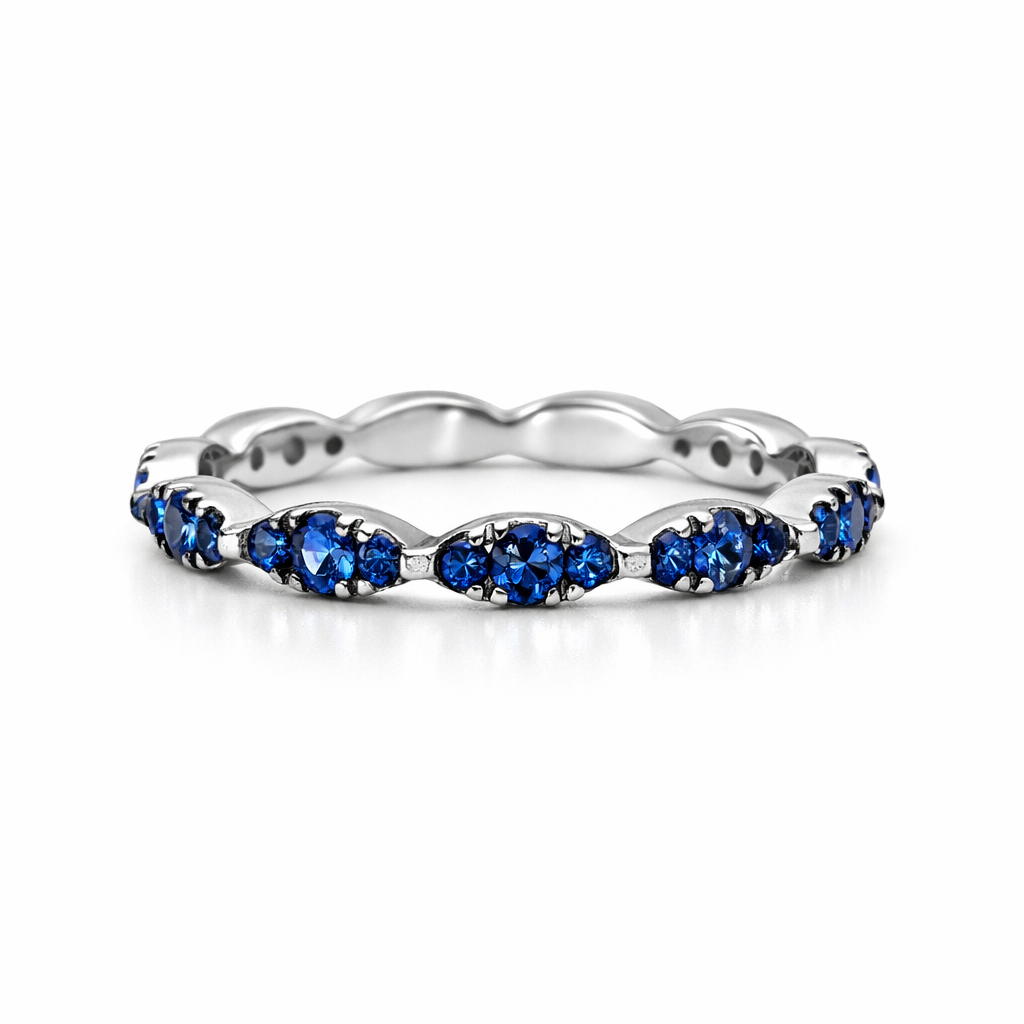 27 round-cut sapphires weighing 0.73 ct, 2.31 g 18kt white gold