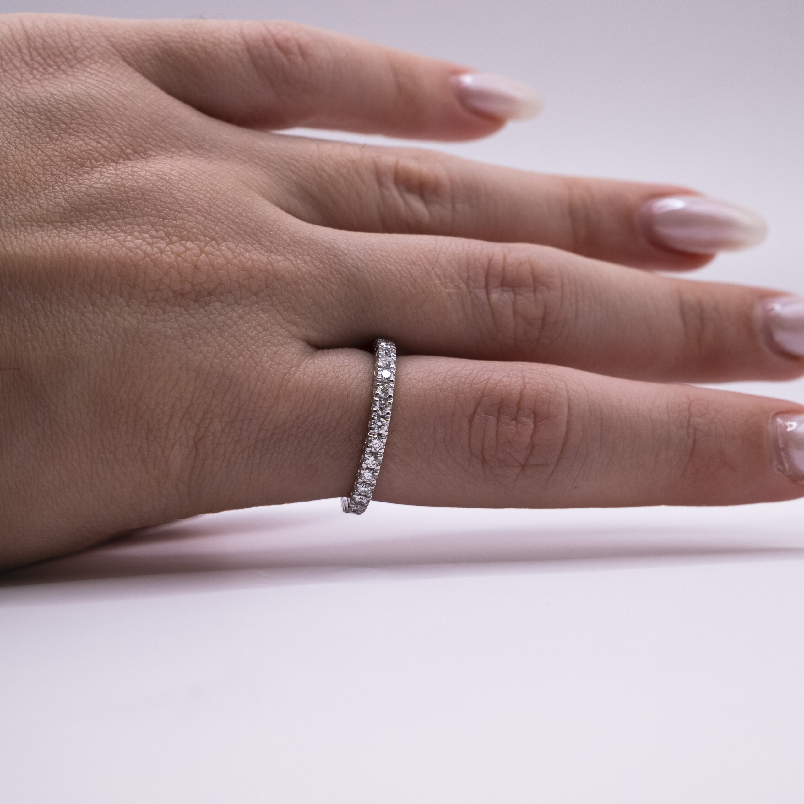 Anello eternity IS22 con 32 diamanti da 0,76ct e 2,20g d’oro bianco 18kt