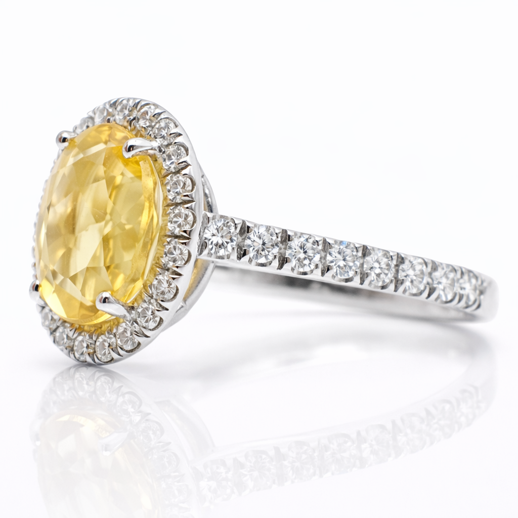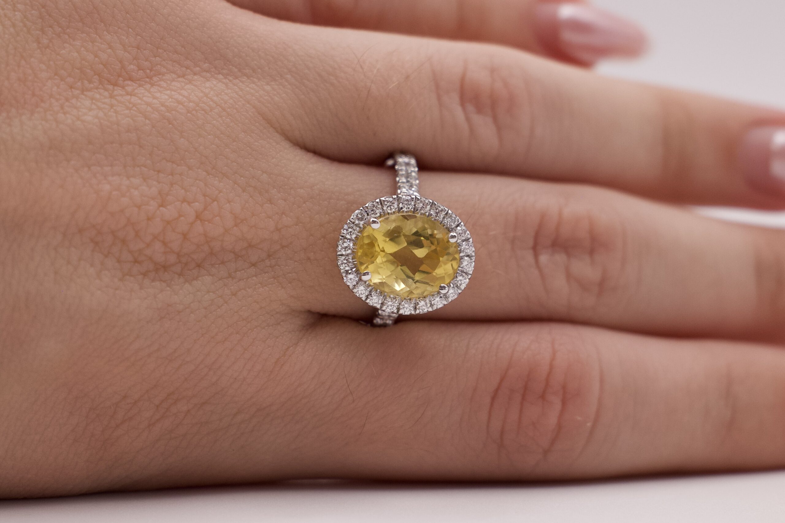 Anello IS168 con 1 citr giallo da 2,84 ct. 36 diamanti da 0,61 ct. e 3,17g d’oro bianco 18kt