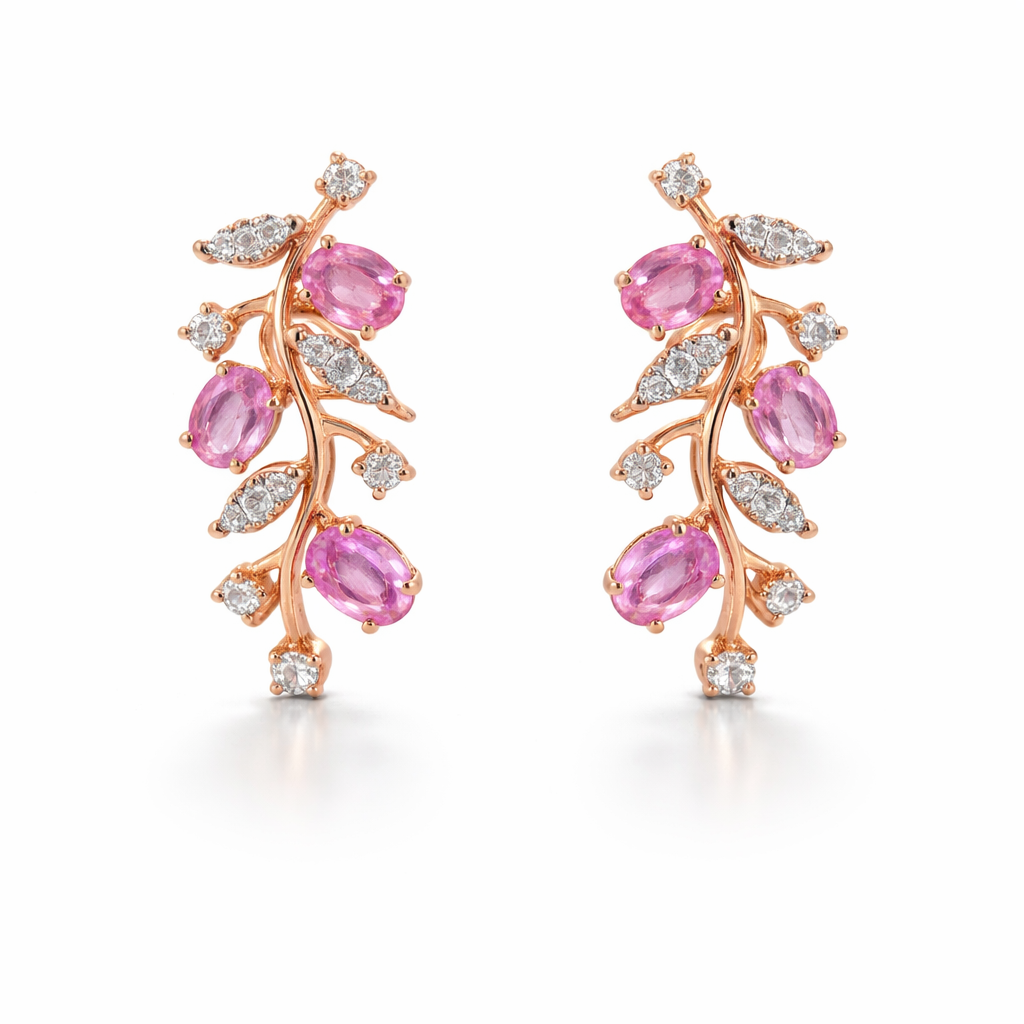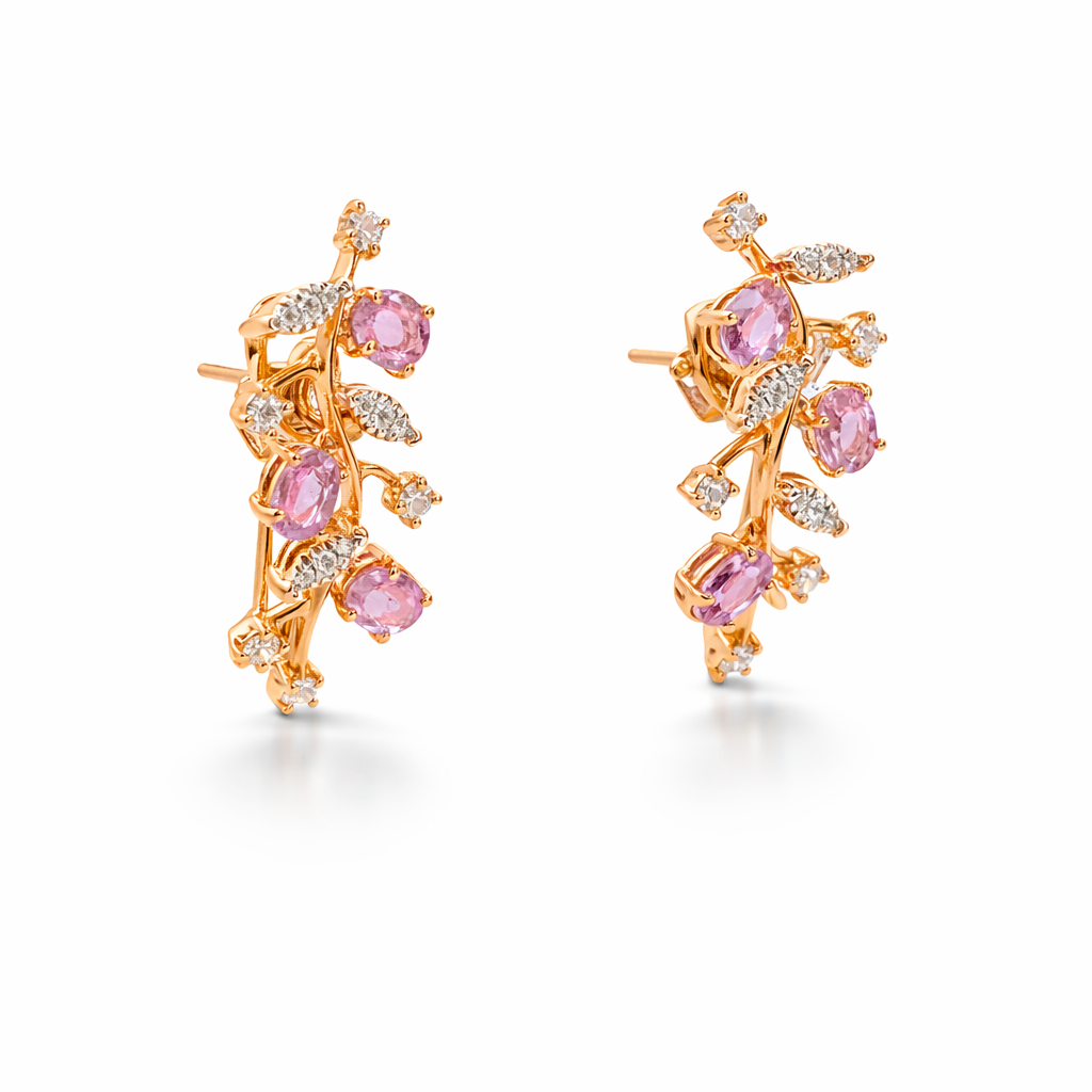 Orecchini pendenti IS257 con Zaffiri Rosa da 2.53ct, Diamanti da 0.60ct e 7.0 g d’oro rosa 18kt