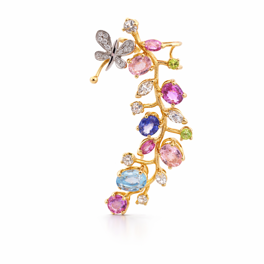Contattaci >Orecchino a clip IS260 con Zaffiri da 3.44ct, Acquamarina da 1ct, Rubini da 0.31ct, Diamanti da 0.95 ct e 7.70 g d’oro giallo 18kt
