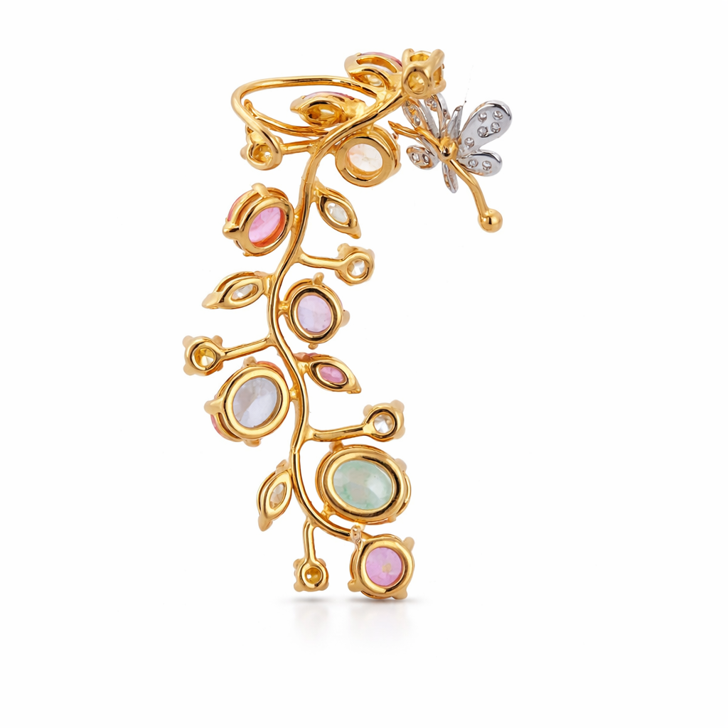 Orecchino a clip IS260 con Zaffiri da 3.44ct, Acquamarina da 1ct, Rubini da 0.31ct, Diamanti da 0.95 ct e 7.70 g d’oro giallo 18kt